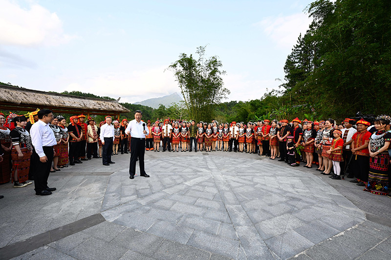 4月10日至13日,中共中央總書記、國家主席、中央軍委主席習(xí)近平在海南考察。這是11日下午,習(xí)近平在五指山市水滿鄉(xiāng)毛納村同村民們親切交流。新華社記者 李學(xué)仁 攝