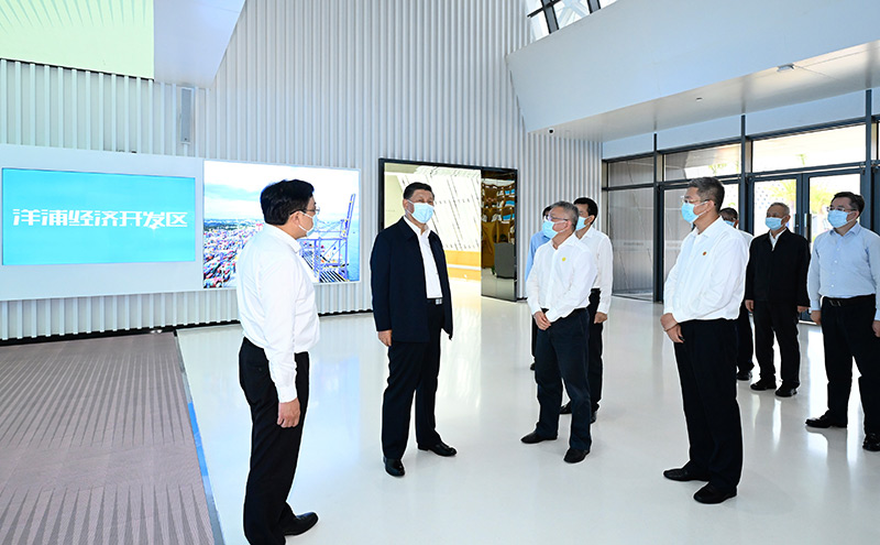 隨后,習(xí)近平來到洋浦國際集裝箱碼頭小鏟灘港區(qū),了解港口建設(shè)發(fā)展情況,同現(xiàn)場作業(yè)人員、掛職干部代表等親切交流。習(xí)近平強(qiáng)調(diào),振興港口、發(fā)展運(yùn)輸業(yè),要把握好定位,增強(qiáng)適配性,堅(jiān)持綠色發(fā)展、生態(tài)優(yōu)先,推動(dòng)港口發(fā)展同洋浦經(jīng)濟(jì)開發(fā)區(qū)、自由貿(mào)易港建設(shè)相得益彰、互促共進(jìn),更好服務(wù)建設(shè)西部陸海新通道、共建“一帶一路”。他指出,黨中央選派干部來自由貿(mào)易港掛職,既體現(xiàn)了黨中央對自由貿(mào)易港建設(shè)的關(guān)心和支持,也是對干部的培養(yǎng)鍛煉,要發(fā)揮掛職干部的積極作用,讓他們在基層一線增長才干。