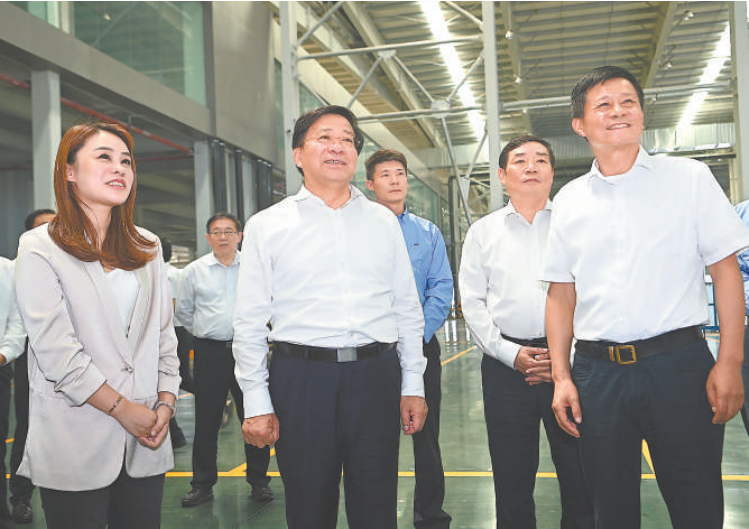 8月31日,省委書記韓俊在滁州市鳳陽縣安徽福萊特光伏玻璃有限公司聽取企業(yè)生產(chǎn)經(jīng)營狀況介紹。本報記者 楊 竹 攝